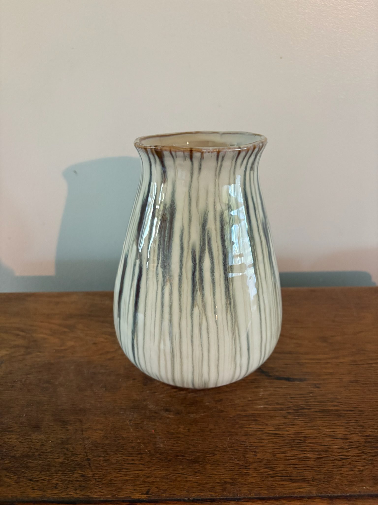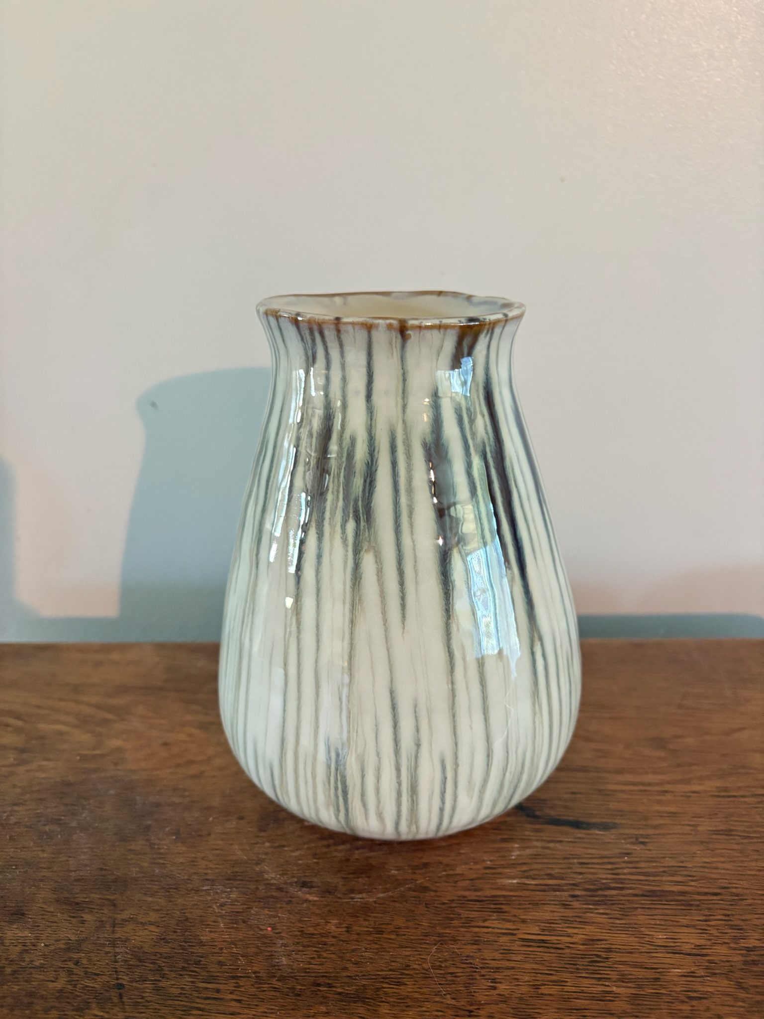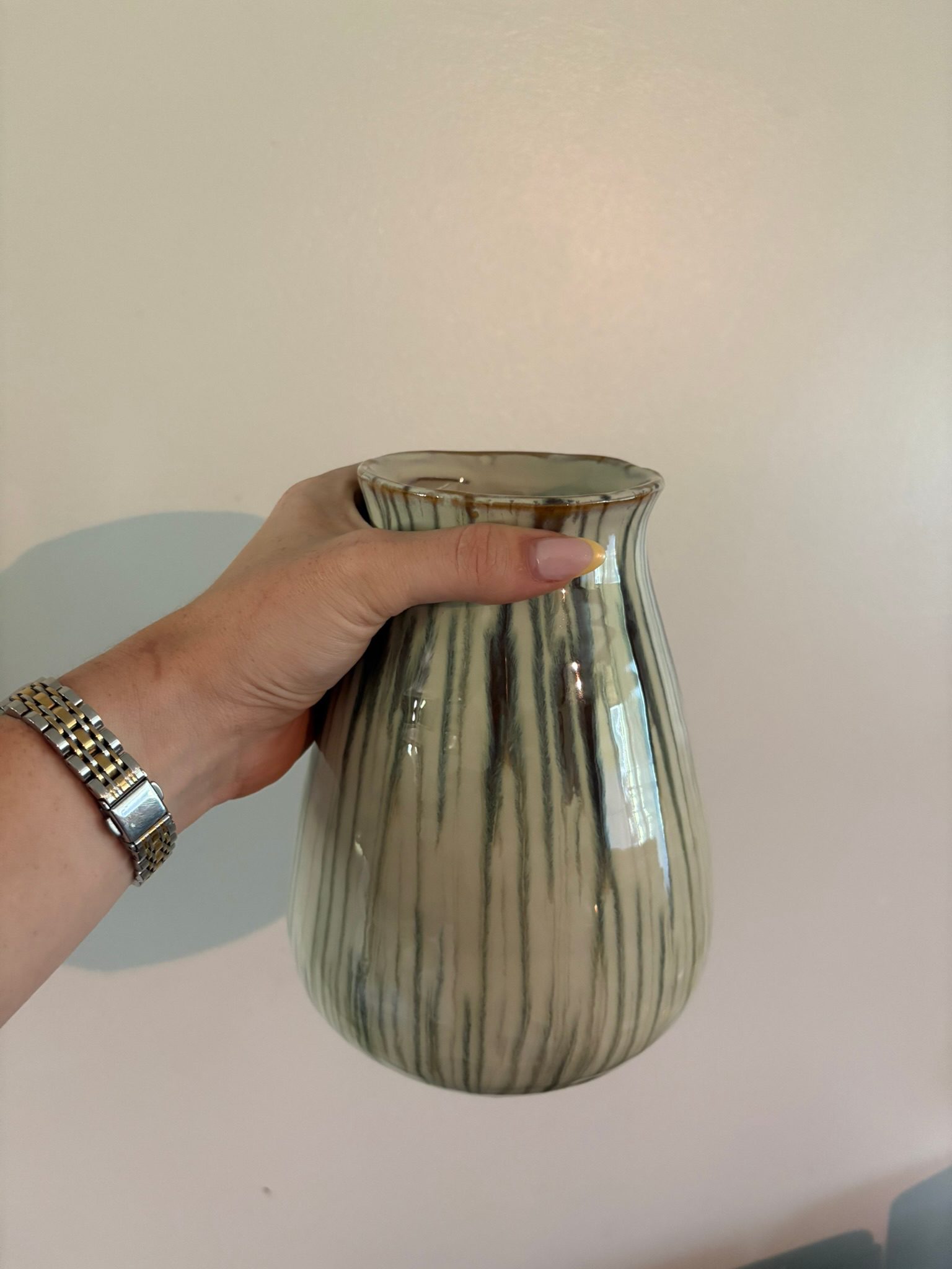 Bring the softness of nature indoors with the Printemp Ceramic Vase. With its gentle curves and vertical ridges, this vase is finished in a glossy, sage green glaze with earthy undertones that flow like brushstrokes. Subtle rust detailing at the rim adds vintage warmth, giving this piece a collected, artisan feel.