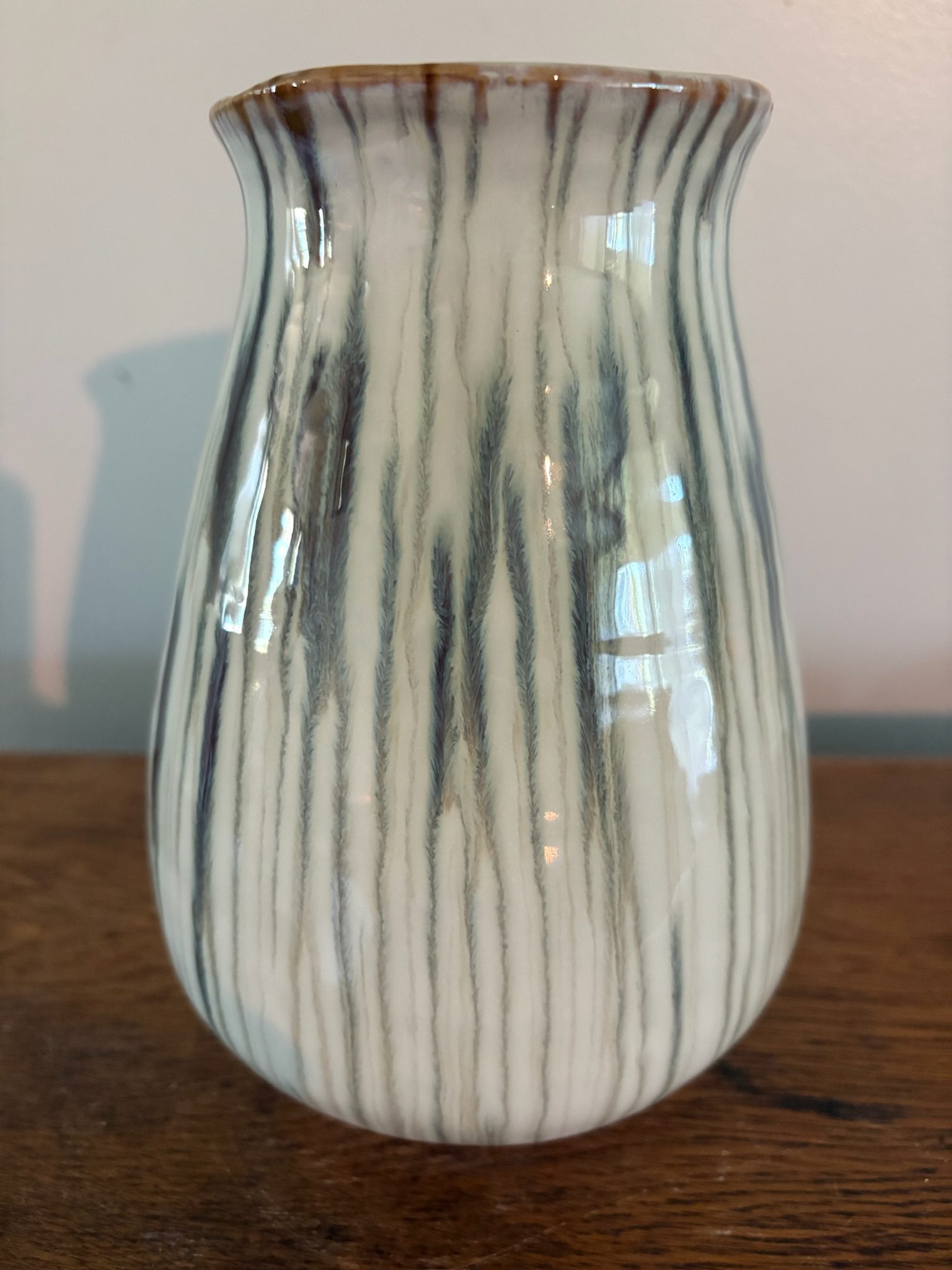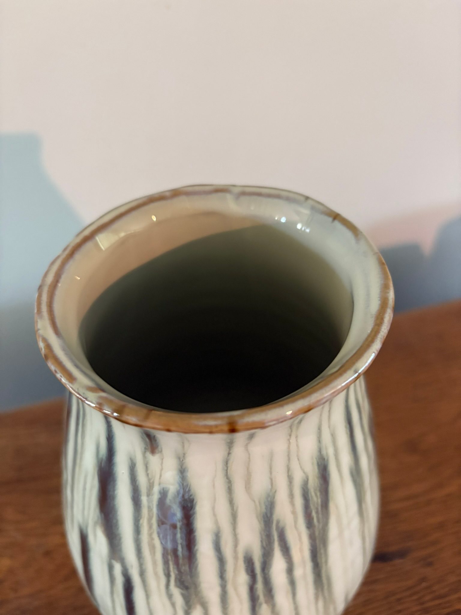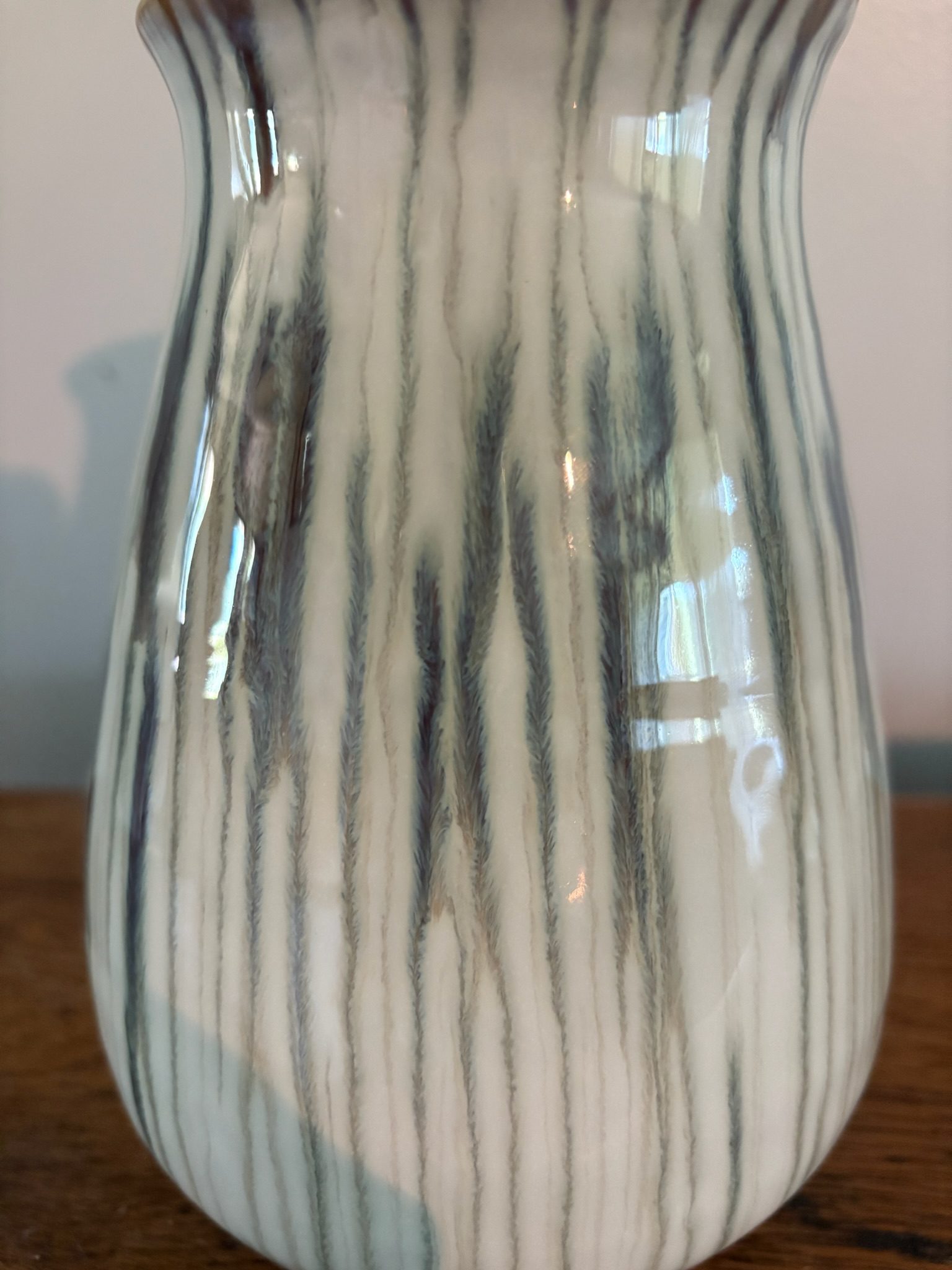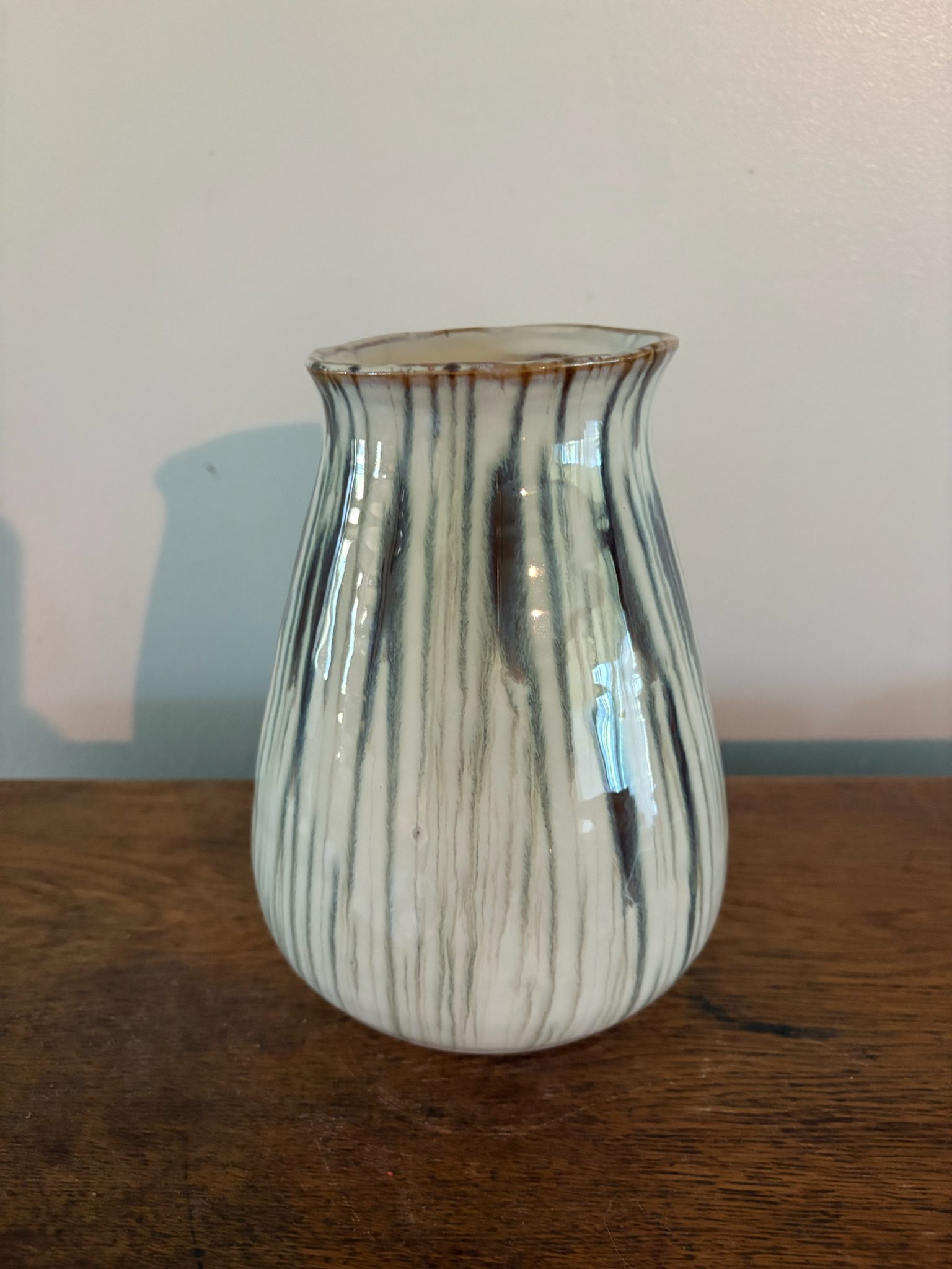 Bring the softness of nature indoors with the Printemp Ceramic Vase. With its gentle curves and vertical ridges, this vase is finished in a glossy, sage green glaze with earthy undertones that flow like brushstrokes. Subtle rust detailing at the rim adds vintage warmth, giving this piece a collected, artisan feel.