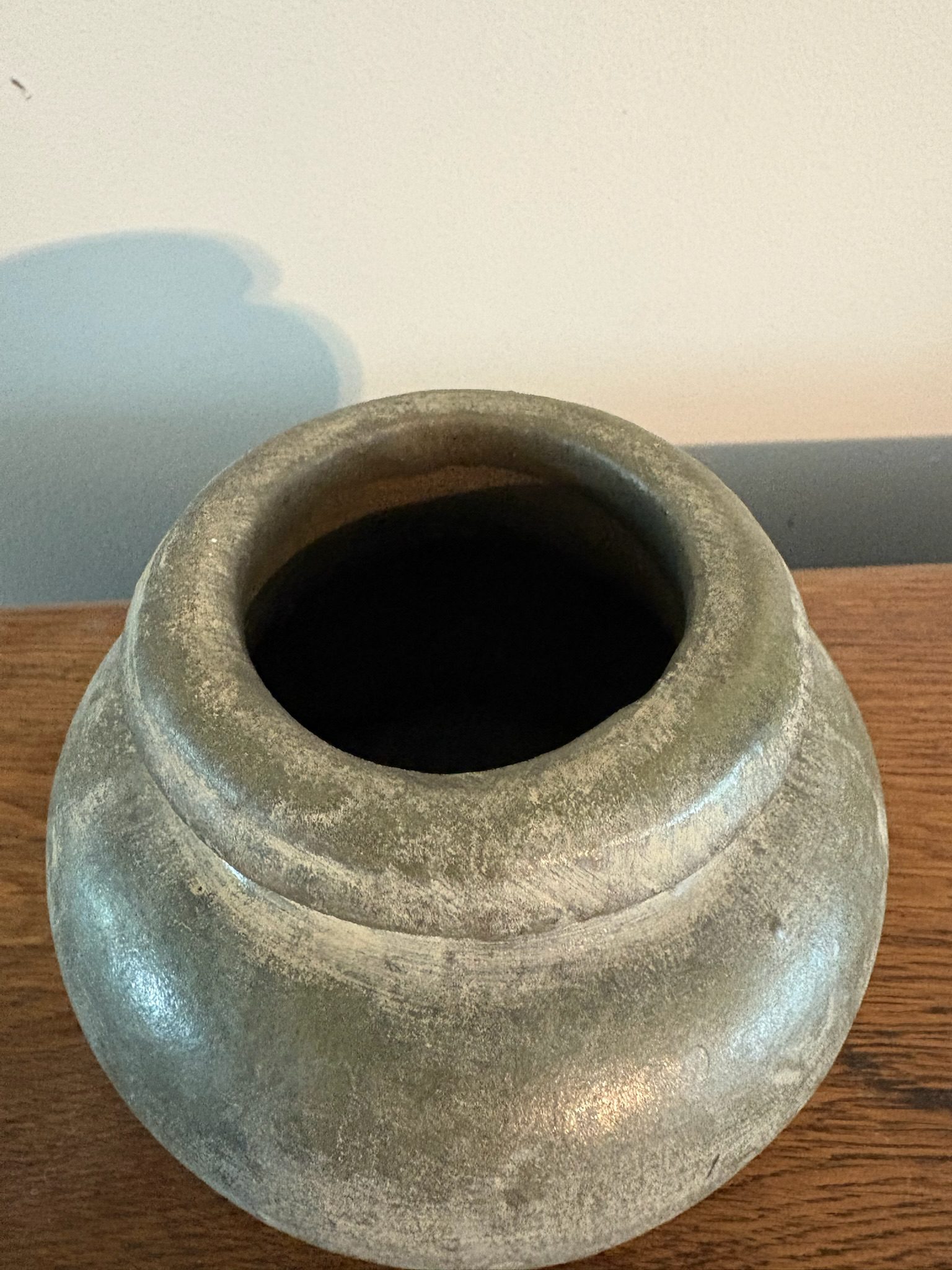 The Gray Vase features a rich, weathered finish and timeless shape, perfect for adding organic charm to any space.The Gray Vase offers a harmonious blend of aged texture evoking the quiet beauty of an heirloom unearthed.