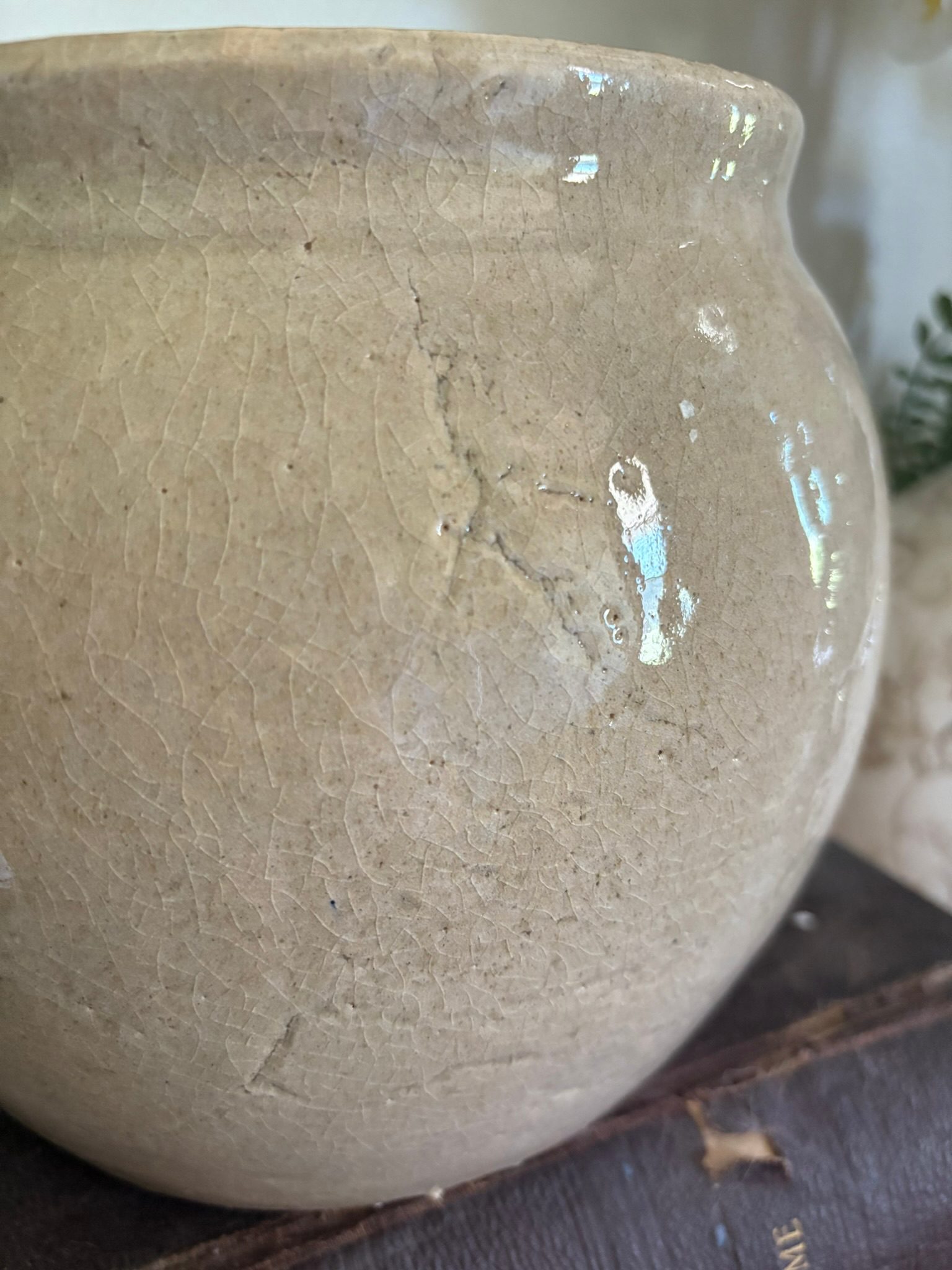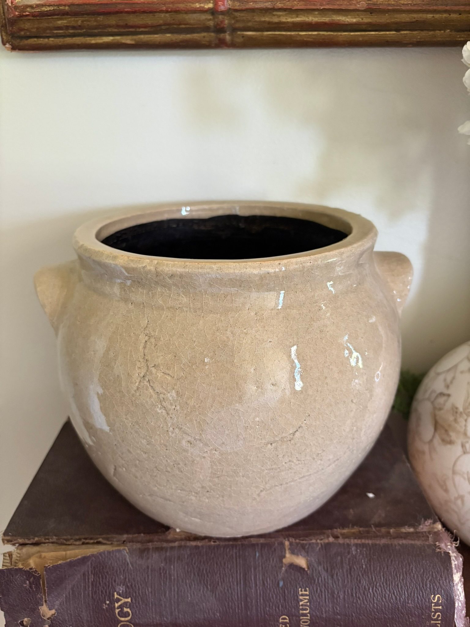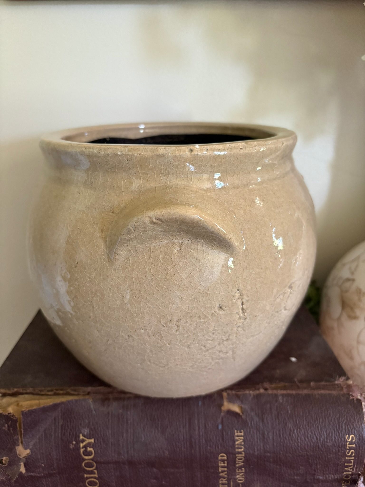 Light Beige Ceramic Crock Planter