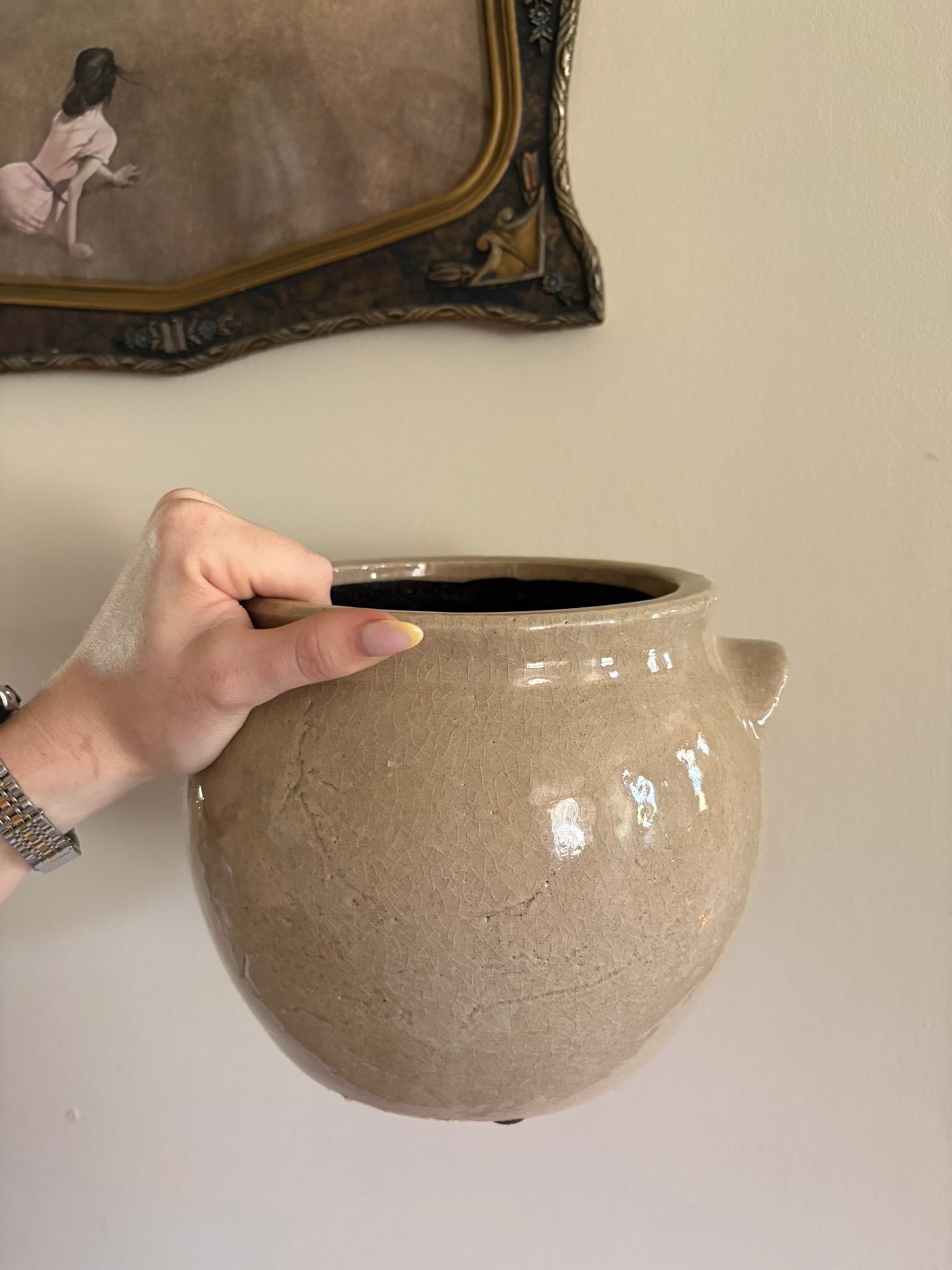 Neutral on the outside, bold on the inside—this ceramic crock is your new go-to for plants, utensils, or stylish storage.