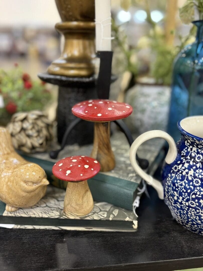 Proof that a little red really does go a long way—these mushroom accents make every corner feel a bit more magical.