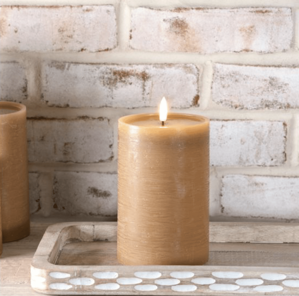 6” Tall LED Wider Caramel Pillar Candle
