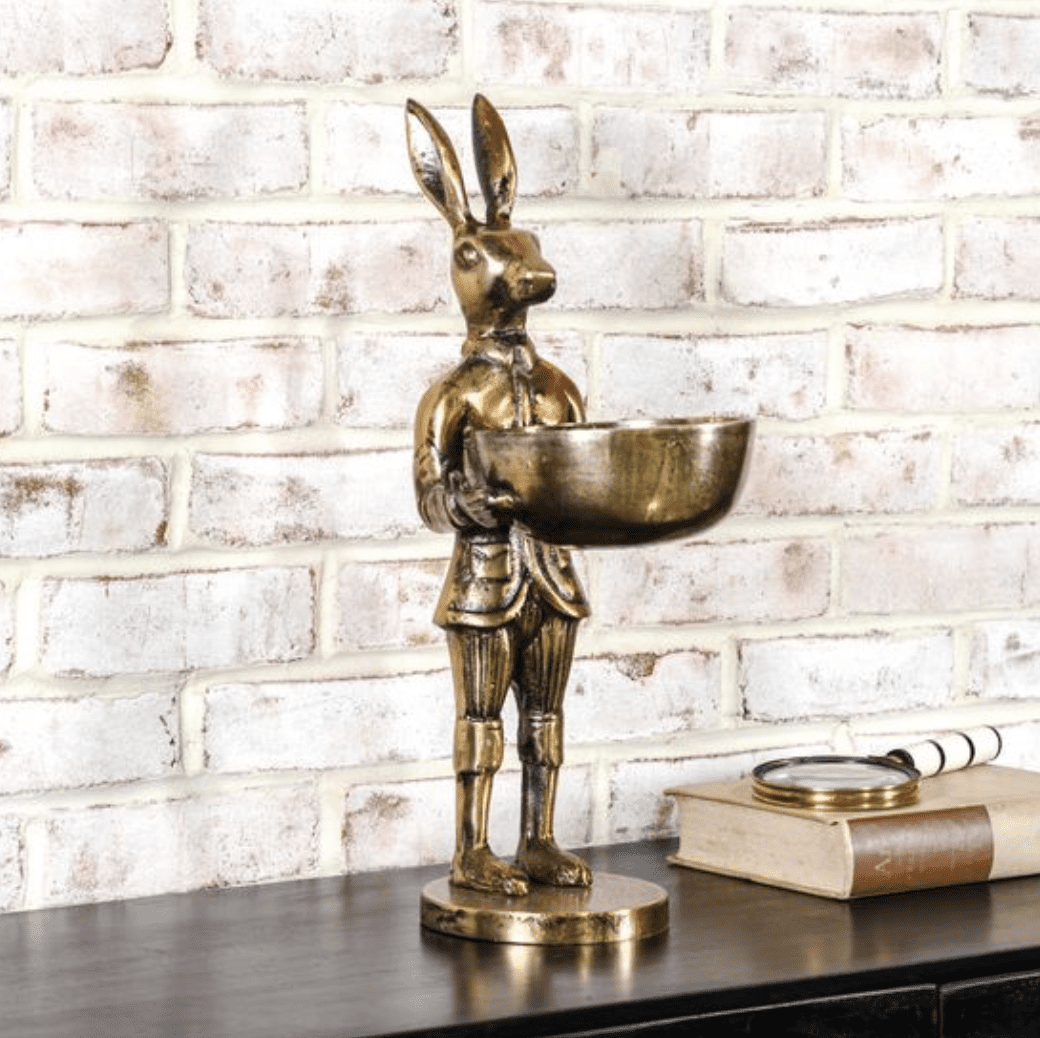 17″ Antique Gold Rabbit with Bowl