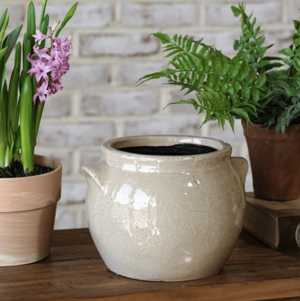 Light Beige Ceramic Crock Planter